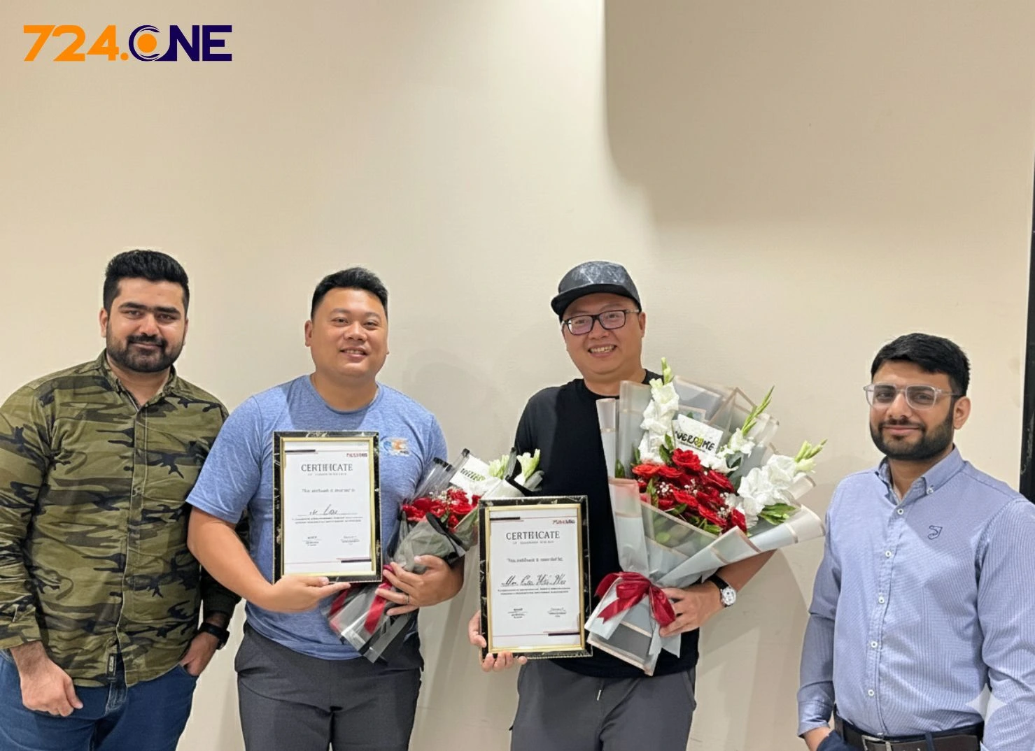 United States at the 724.ONE headquarters. The visit marked an important step in strengthening our ongoing collaboration on their innovative application project currently under development by our team. During the meeting, we discussed project progress, shared insights on product strategy and future goals, and exchanged ideas for continued technical excellence and partnership growth. As a token of appreciation, Certificates of Honor were presented to our distinguished guests in recognition of their trust, collaboration, and commitment to innovation. The moment was captured with Mr. En We Wu, Mr. Ben, Mr. Yasir (Founder, 724.ONE), and Mr. Farooq (CEO, 724.ONE), symbolizing our shared vision for cross-border technological advancement and long-term partnership.